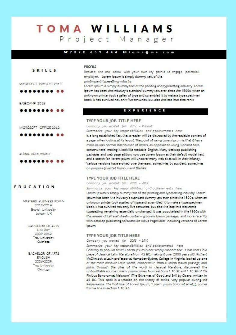 - Each element on the resume template has been designed in separate text boxes so that it can be easily moved, copied, or removed. Simply click on the text and start typing over my dummy text.